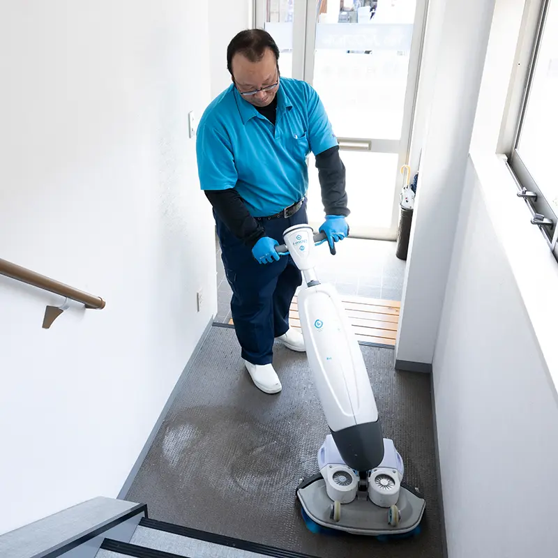清掃業務の難しさは、人の目で基準が変わるところ。清掃後に「きれい」と思っていただけるか、それとも「まだまだ」なのかは、お客様の見る目で異なります。その基準を変えられるのは、私たちが「頑張っている姿」ではないかと思っています。